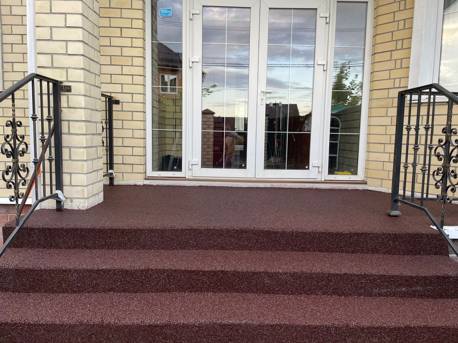 - создаётся на месте из смеси крошки (фракция 2–4 мм) и связующего;